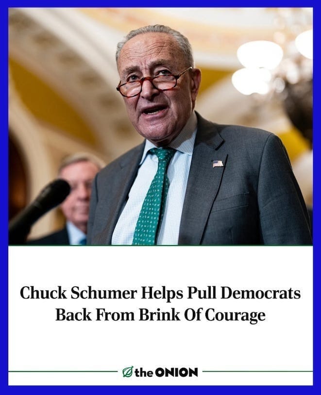A bloc of eight Democratic senators broke ranks to end the shutdown. Of the eight senators, two are retiring; none face re-election next year; and half come from two states, New Hampshire and Nevada: Angus King (ME), Tim Kaine (VA), Dick Durbin (IL), John Fetterman (PA), Maggie Hassan (NH), Jeanne Shaheen (NH), Catherine Cortez Masto (NV), Jacky Rosen (NV).