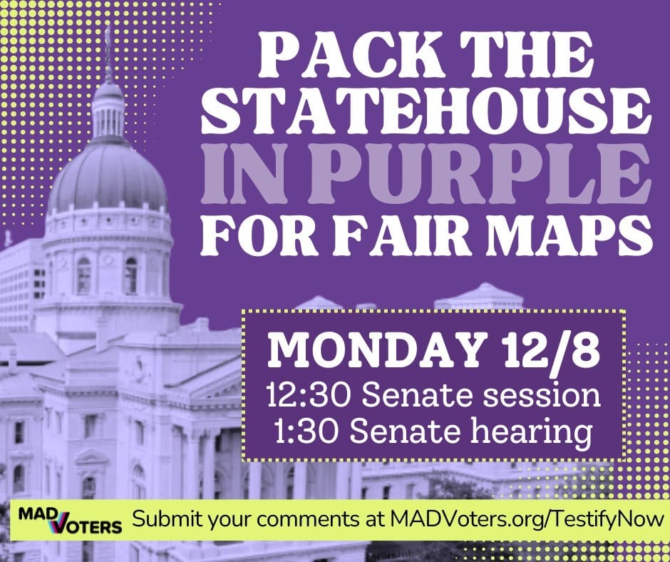 1.Call your Senator at 317-232-9400, and tell them NO REDISTRICTING. You can also use this online action form: MADVoters.org/no-cheaters.