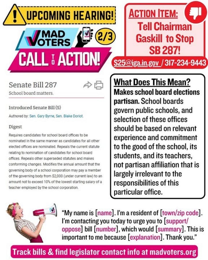 Monday is a particularly bad day for the future of voting rights in Indiana, as several bad bills are being heard in the House and Senate. See below from MADVoters: