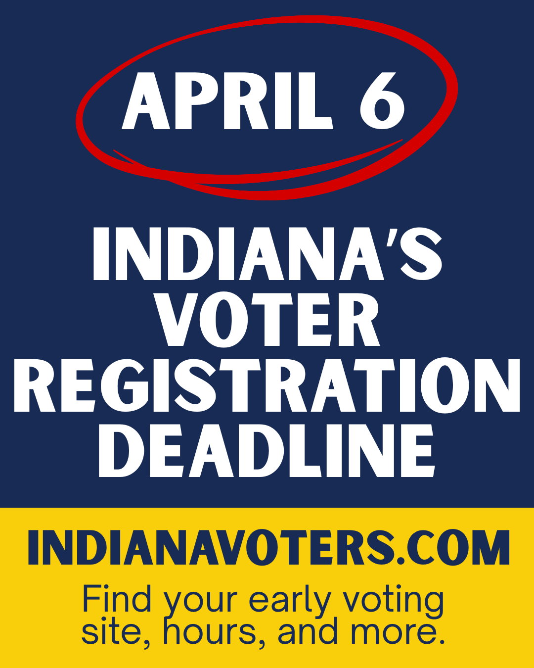 We are just days away from the deadline to register to vote in Indiana. Please head to indianavoters.com today and double check your registration before the deadline on Monday, April 6.